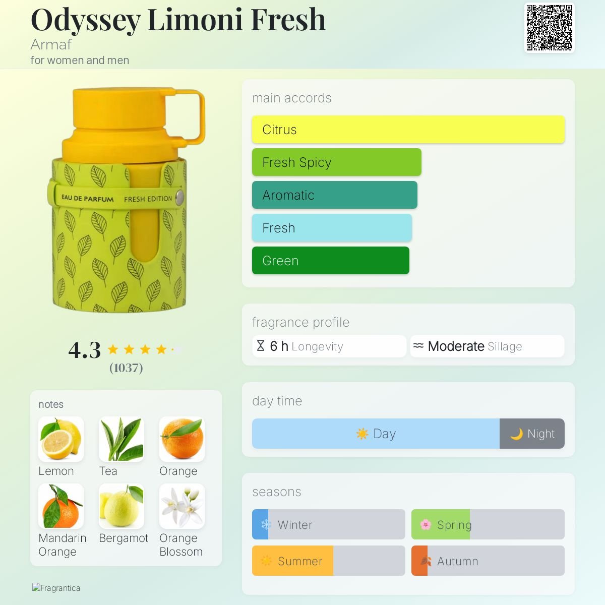 The dry-down is a warm, enduring finale of tranquil comfort. A unique note of Blue Tea provides a serene, herbal clarity, while the rich warmth of Amber and clean Musk leaves a smooth, “second-skin” trail. This foundation ensures the fragrance maintains a lasting, uplifting impression that performs exceptionally well in high heat. Odyssey Limoni Fresh is the ultimate summer essential—perfect for daytime wear, professional environments, and casual outdoor adventures, signifying a presence that is consistently clean, vibrant, and undeniably fresh.