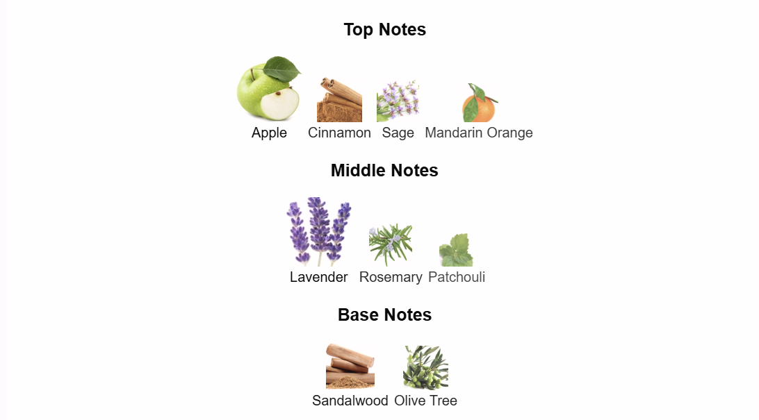 The fragrance opens with an invigorating, crisp aromatic freshness that immediately uplifts the spirit. Juicy Apple and zesty Mandarin Orange provide a dynamic, clean fruity burst. This fresh accord is spiced with a tempting hint of Cinnamon and the clean, herbaceous greenness of Sage. This is a bright, versatile opening, perfectly capturing the vitality needed for navigating the complexities of modern life.