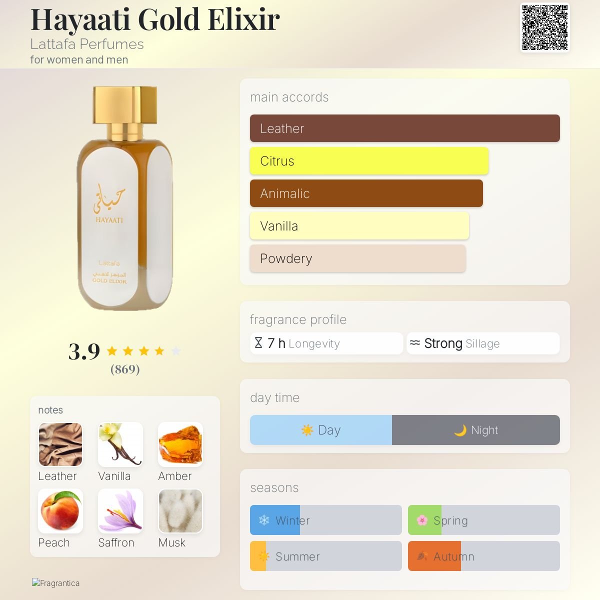 The dry-down is a warm, enduring finale of addictive comfort. Rich Vanilla and golden Amber provide a dense, sweet glow that lingers for hours on the skin. Earthy Vetiver and clean Musk anchor the composition, ensuring a trail that is both sophisticated and animalic in its allure. Hayaati Gold Elixir is a versatile powerhouse—perfect for cooler Fall and Winter days, evening events, and intimate encounters, signifying a presence that is as radiant as it is enduring.