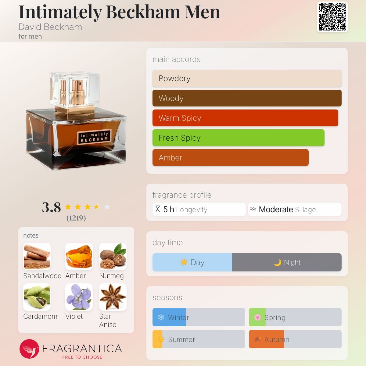 The dry-down is a powerful, long-lasting finale of golden woods. Creamy Sandalwood and earthy Patchouli provide a solid, masculine foundation, while rich Amber leaves a warm, comforting glow on the skin. This foundation ensures a persistent and highly magnetic trail that is refined rather than aggressive. Intimately Beckham Men is a versatile modern classic—perfect for evening wear, date nights, or office elegance, particularly during the Fall and Winter seasons.