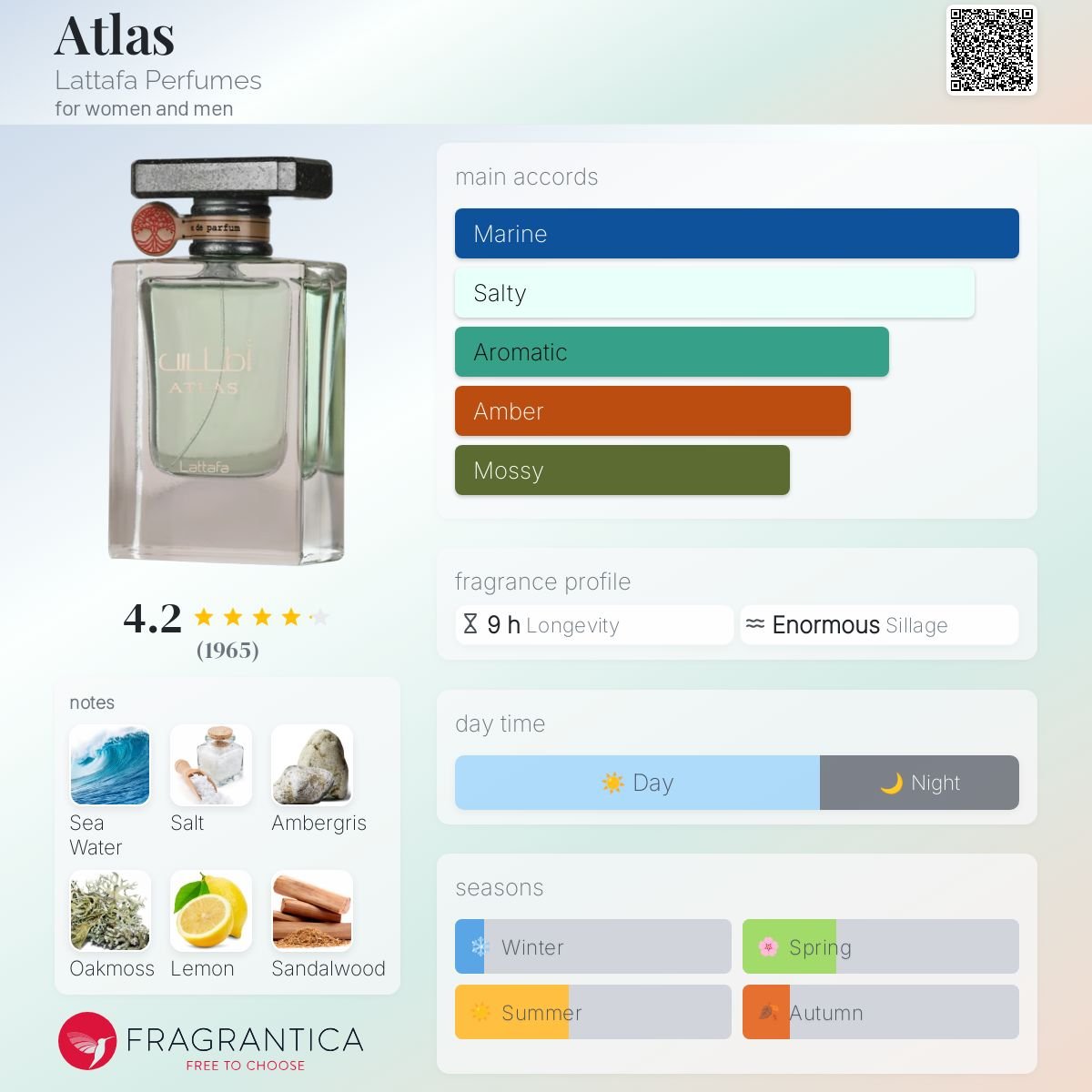 Lattafa Atlas is a powerful and immersive Eau De Parfum that captures the raw, untamed essence of the vast ocean and the rugged Atlantic coastline. Launched in 2024, this fragrance is a masterclass in the “Sea-Aromatic” genre, embodying the feeling of absolute freedom, salt-crusted skin, and the mysterious power of the deep. To wear Atlas is to wrap yourself in a uniquely potent aura—it is a scent for the individual who seeks a fragrance that is as enduring and formidable as the sea itself.