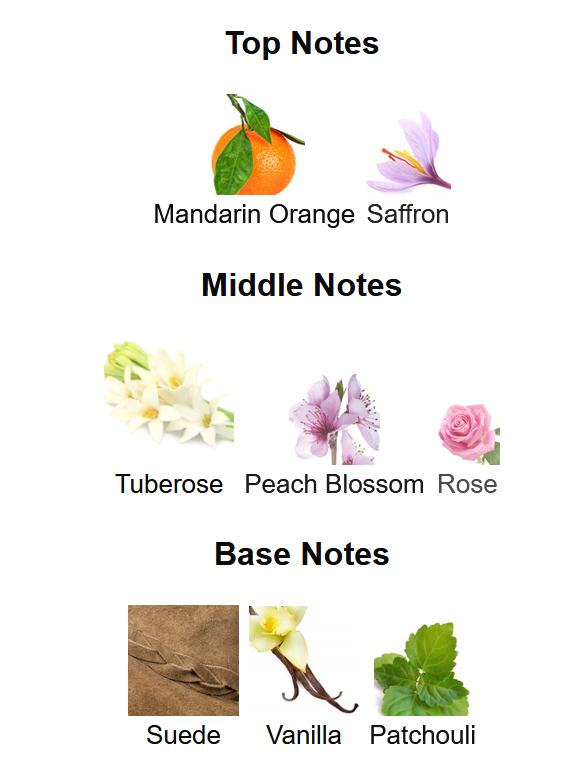 Top Notes: Rose, Saffron, Nutmeg (Warm & Floral Opening).