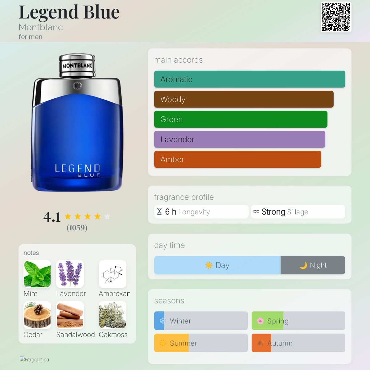 The dry-down is a powerful, long-lasting finale of magnetic warmth. A potent dose of Ambroxan provides a clean, diffusive depth, while the earthy, green resonance of Moss leaves an intense olfactory trail. This foundation ensures the fragrance has exceptional longevity on the skin, leaving a comforting yet striking masculine aura. Legend Blue is a versatile masterpiece—perfect for all seasons, professional environments, and casual daily wear, ensuring you project a presence that is consistently fresh, elegant, and undeniably legendary.